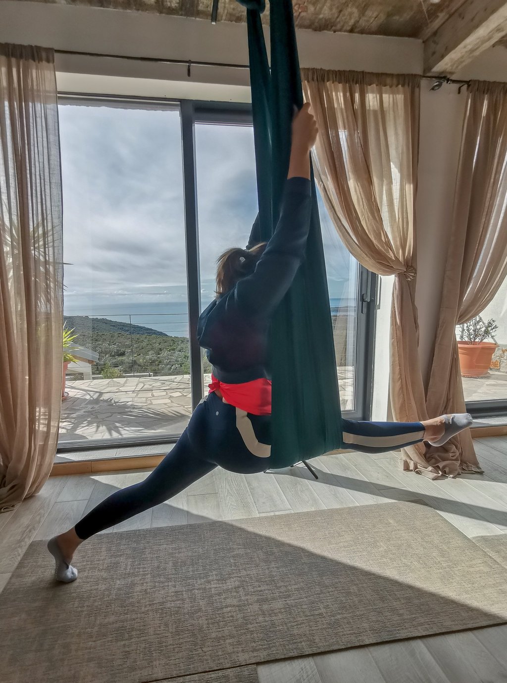 Villa Diva, with its panoramic views of the Adriatic, provided the perfect setting for Jelena’s introduction to aerial yoga. Guests floated above the ground, embraced by silk and sea breeze, discovering both playfulness and profound stillness. The villa’s atmosphere—luxury intertwined with nature—made every pose, every breath, and every sound resonate more deeply.